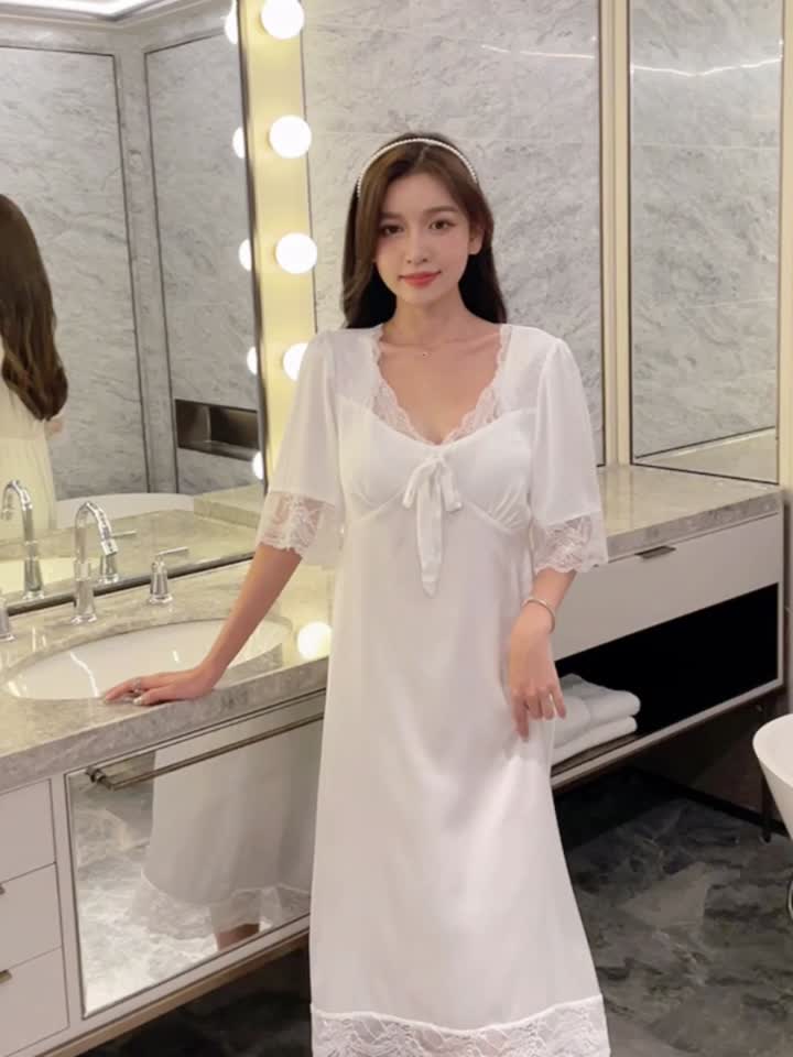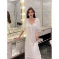 Weißes, elegantes Nachthemd mit Spaghettiträgern – Model Showcase | Taizhou Xiajie Kleidung